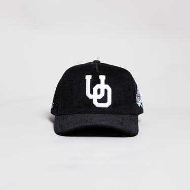 This A-frame snapback is built from full black corduroy for a clean, tonal look with elevated texture. The front features the Oregon interlock “O” embroidery in white, paired with a custom Ducks side patch and subtle tonal stitching to finish the design.