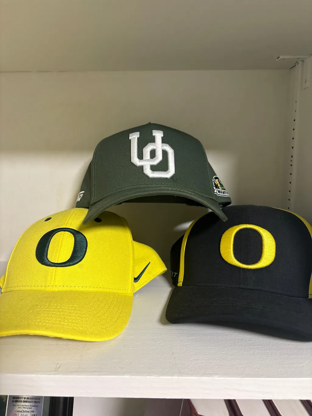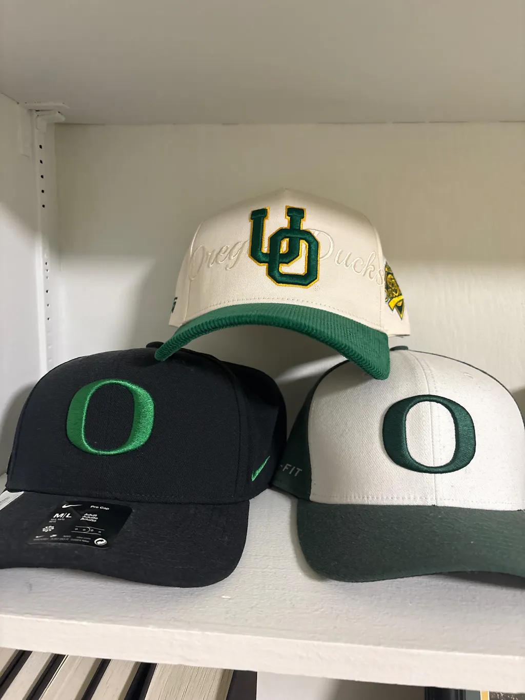 This A-frame snapback pairs a cream cotton crown with Oregon’s interlocking “UO” logo and a tonal “Oregon Ducks” script across the front. It’s finished with a green corduroy brim, a custom side patch, and a snapback closure for a clean, classic fit.