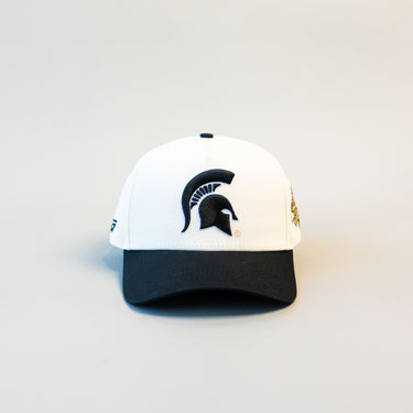 This A-frame snapback features a white cotton crown with the Spartan helmet front and center, paired with a black brim. Finished with the official Michigan State side patch and snapback closure.