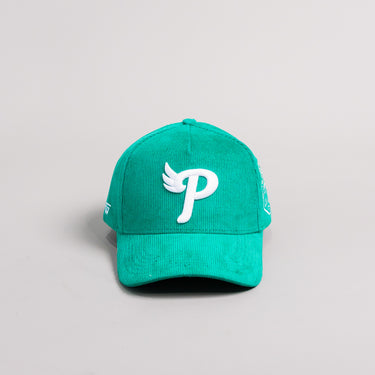 A structured corduroy hat in a bold green finish, featuring the winged “P” embroidery front and center. A Liberty Bell patch sits on the side, tying it back to the city’s roots.